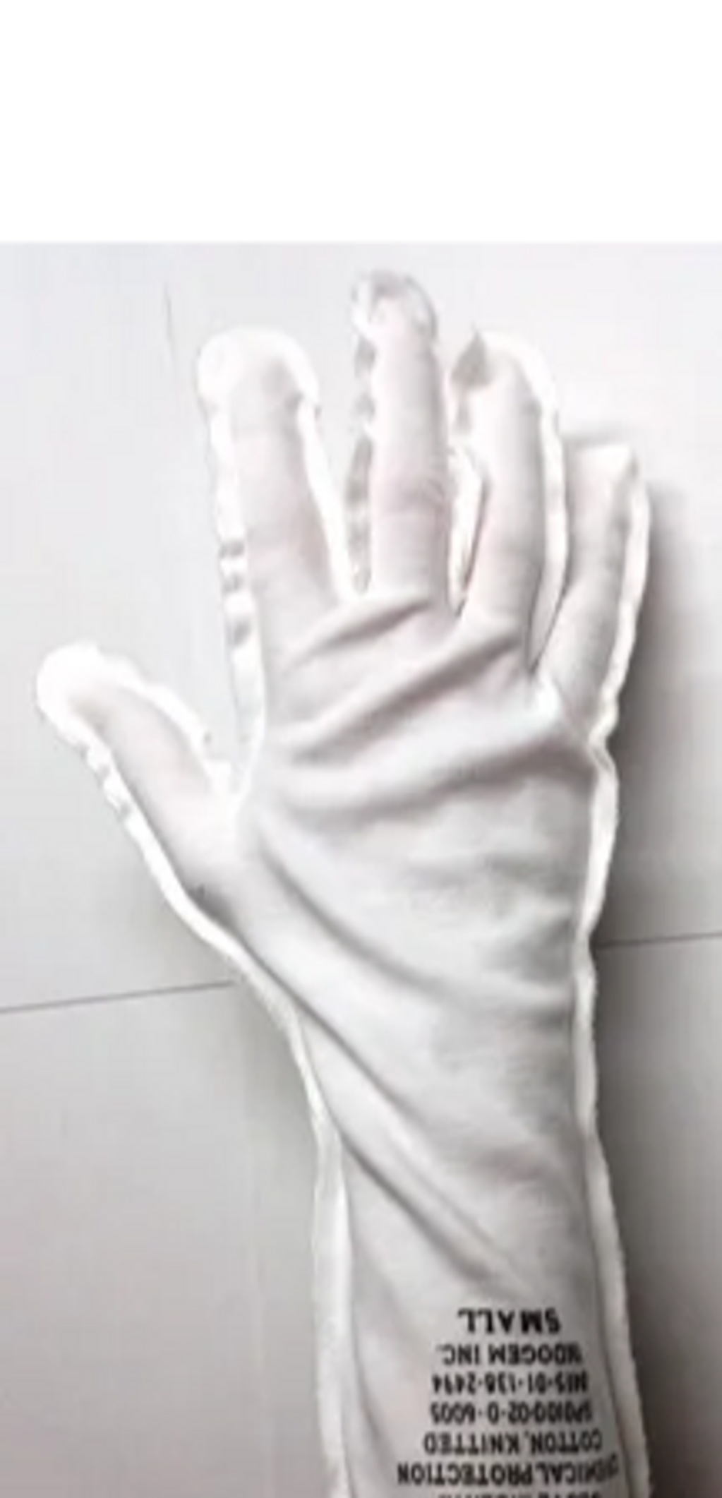 14" Long Cotton Gloves, Jersey Fabric, Designed to be a liner for chemical protective gloves.
